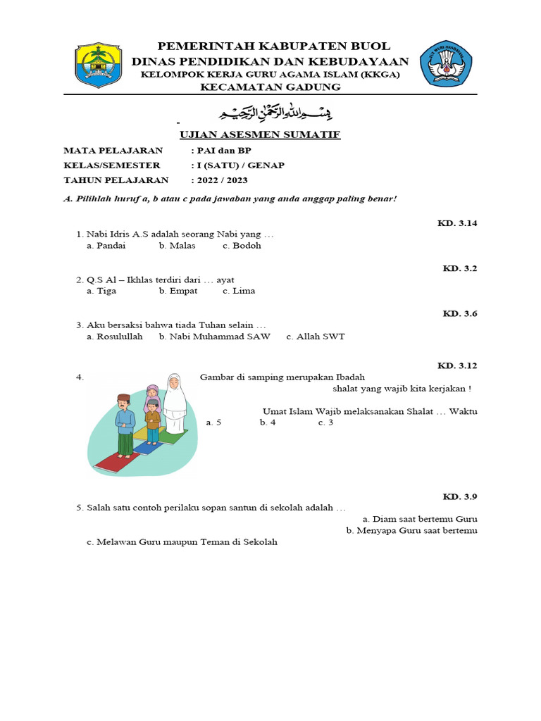 Memasuki akhir semester genap, para siswa kelas 1 Sekolah Dasar (SD) bersiap menghadapi Ujian Akhir Semester (UAS). Bagi siswa kelas 1, UAS menjadi pengalaman ujian formal pertama mereka, sehingga persiapan yang matang sangatlah penting. Kurikulum 2013 (K13) yang diterapkan di banyak sekolah menekankan pada penilaian holistik yang mencakup berbagai aspek perkembangan anak, bukan hanya hafalan. Artikel ini akan mengulas secara mendalam mengenai apa saja yang perlu dipersiapkan untuk UAS kelas 1 SD K13, beserta contoh soal yang relevan untuk membantu siswa dan orang tua berlatih.